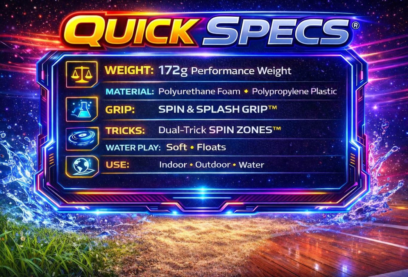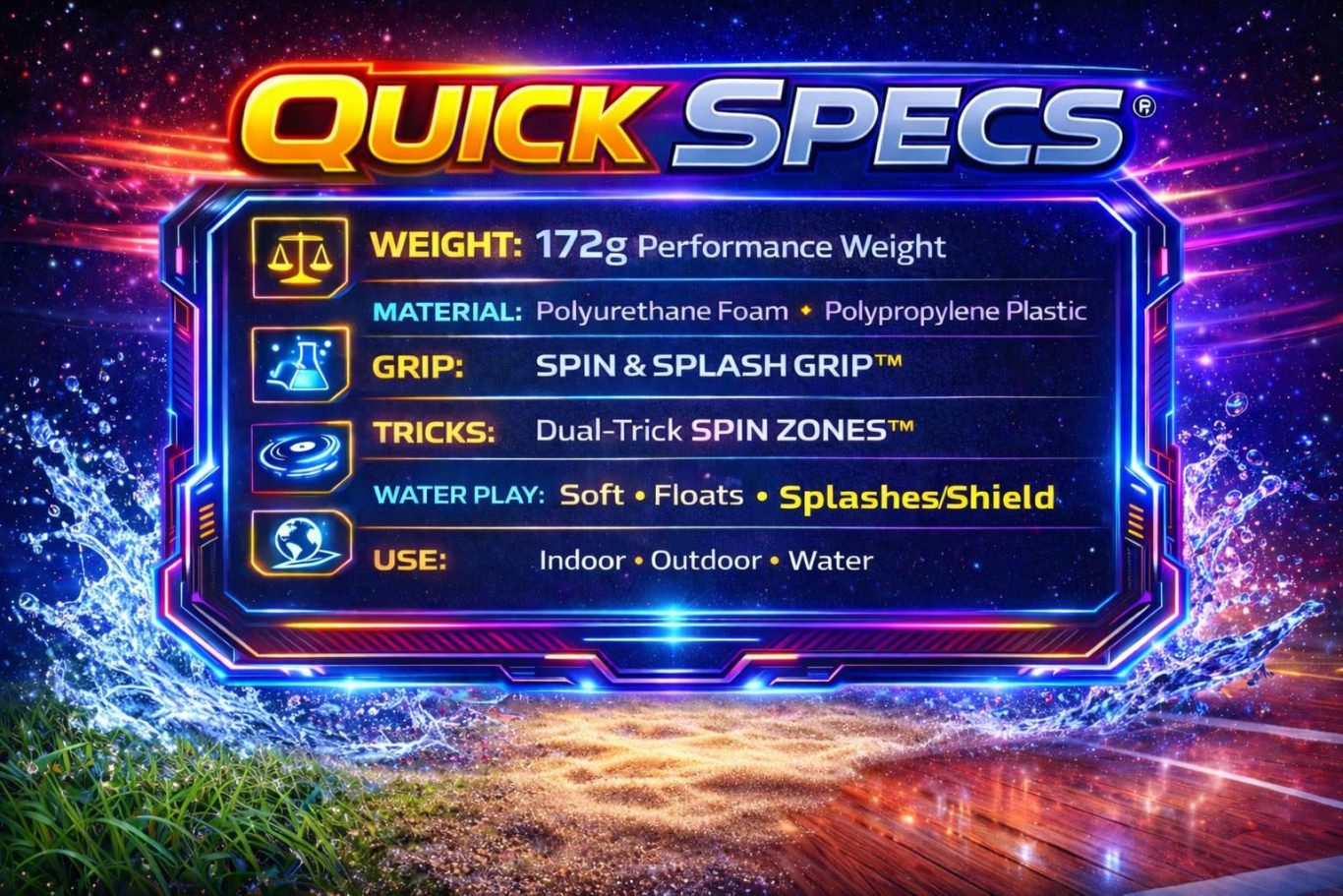 With Spin & Splash Grip™ technology, Spin Pro® creates massive splashes and can be used as a splash shield during water play.